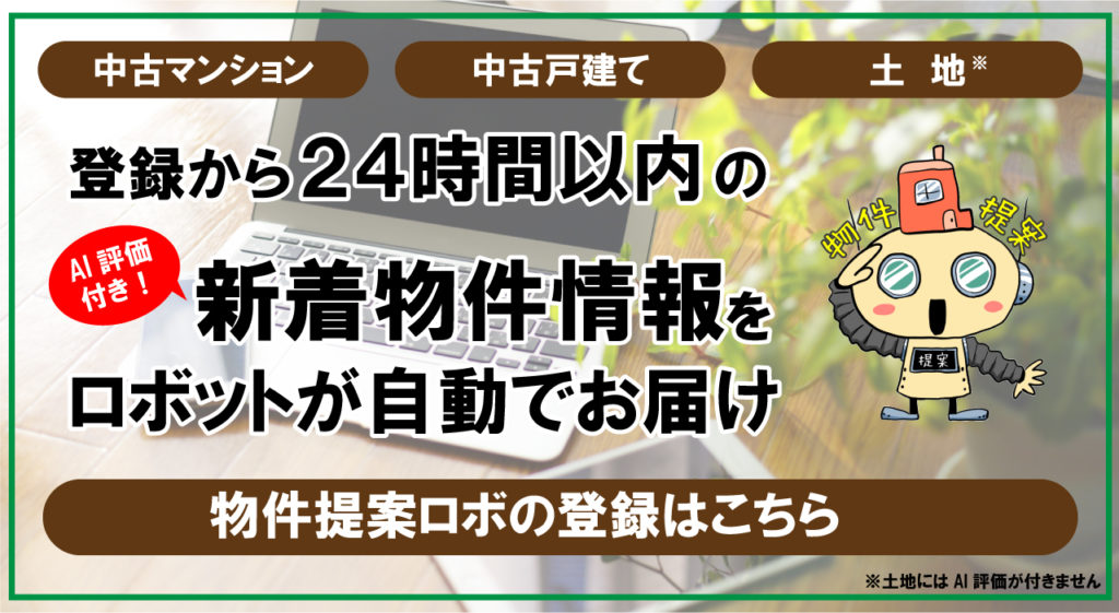 指定した条件に合致する新着物件情報が自動配信されます。誰でも簡単に物件の善し悪しが判別できるAI評価付きの情報をお届けします。